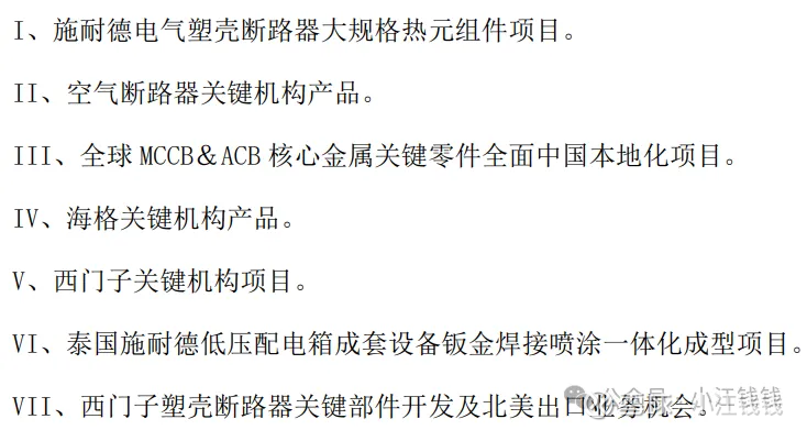 低压配电精密部品:在低压系统里,负责导电、连接、开关、控制的高精度金属小零件,包括断路器、配电箱、开关柜内部的精密金属小件等。