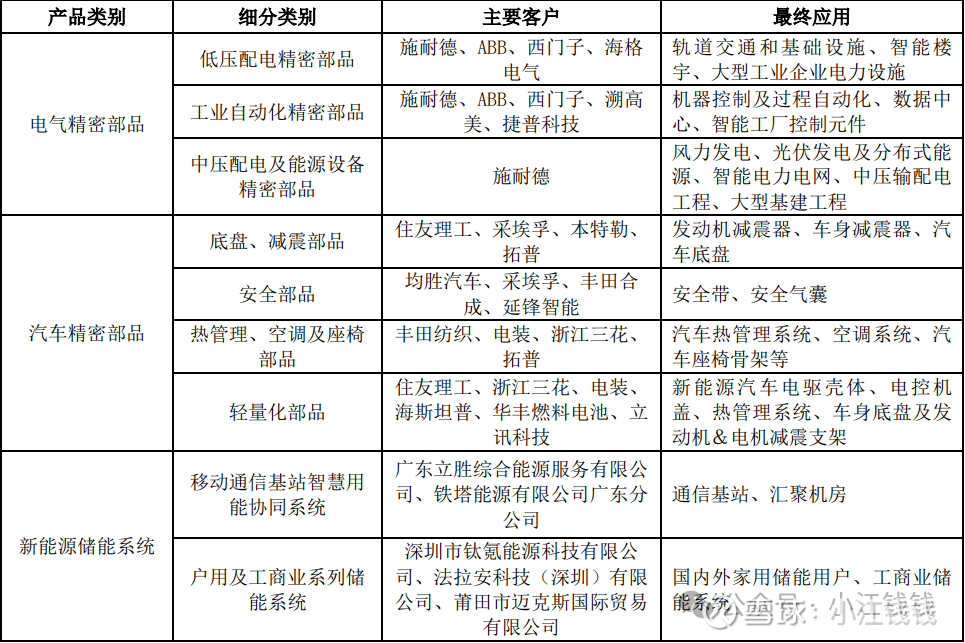 公司主要客户是施耐德:法国能源科技巨头,成立于1836年,2025年营收401.5亿欧元,大概3220亿人民币,主要产品有中低压电气设备、工业自动化等。