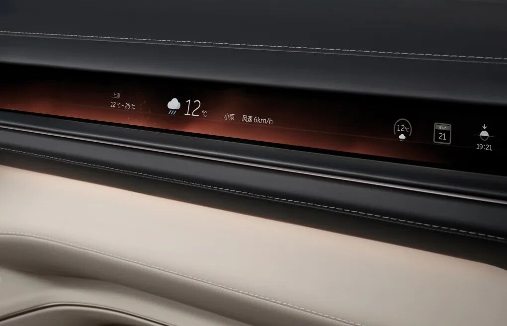 在智能体验方面,智己LS6“全新全场景数字座舱”为用户提供了交互体验,其中27.1英寸的5K巨幅驾舱屏采用了瑞丰光电Mini LED COB背光灯板方案拥有800nit亮度与100000:1超高对比度,还采用了隆利科技Mini LED显示技术。