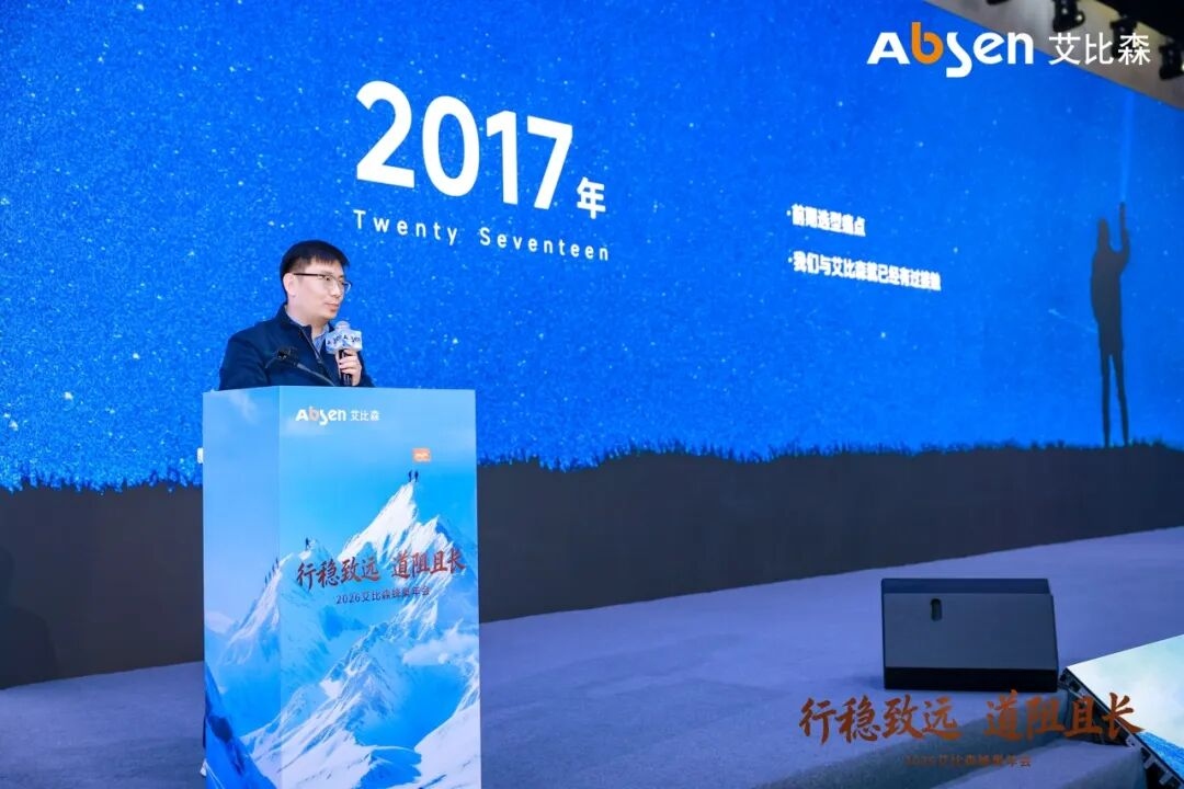 年会现场,艾比森董事长丁彦辉发表《行稳致远,道阻且长》主题演讲,以“聚焦机制优化、强化团队建设、明晰目标路径、锚定核心根基”四大维度,深刻剖析在当前市场环境疲软的背景下,企业高质量发展的核心逻辑,为2026年艾比森的发展定向领航。他强调,“走得稳,才能走得远,做企业就像马拉松式的接力赛,要比谁走得更远、更持久。”