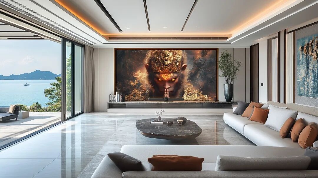 针对超大屏“有屏无内容”的问题,雷曼独创了“虚拟现实”功能,内置数十套精品内容,让屏幕化身为艺术墙、风景墙、氛围墙等。此外,通过集成AI交互和内容生成能力,用户可以通过简单的指令创作超高清视觉作品,解决了高质量内容的匮乏难题。