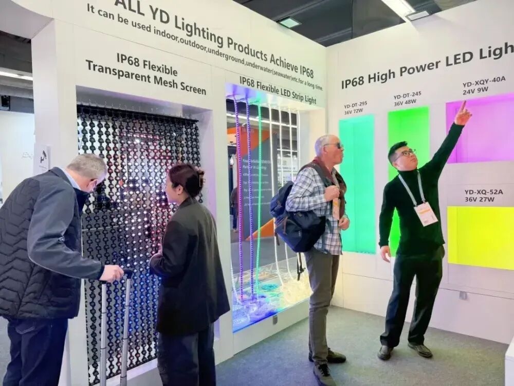 勇电照明展示了多款景观及工程照明产品,展品包括柔性线条灯、视频像素线条灯、模组式大功率灯具以及水下灯等,面向建筑景观和户外照明应用场景。其中,IP68柔性线条灯具备较高柔韧性和机械强度,可进行弯折和塑形,适用于户外、地埋及水下等复杂环境。