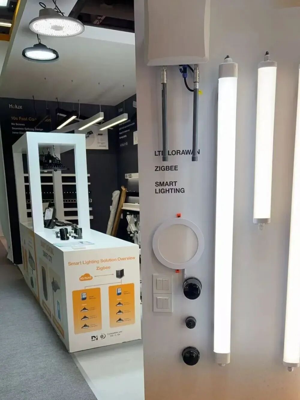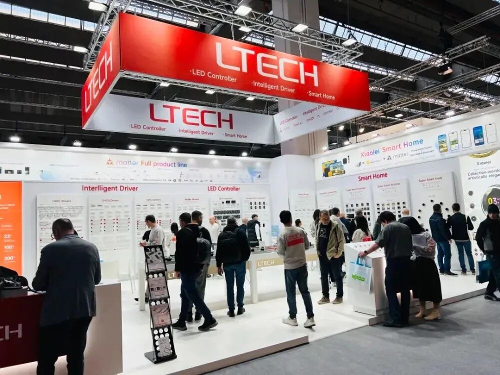 雷特科技展示完整照明智控产品体系与一站式解决方案,覆盖商业、家居、室内外多场景应用。包括LED控制器、高低压防水控制器及大功率户外电源、LF系列智能电源,以及Modena、Dubai及超级智能面板等智能家居产品。