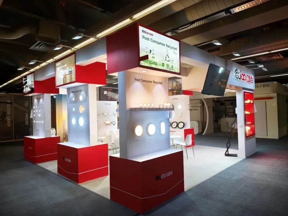 红壹佰照明展示了面向家居、户外、办公、商业及工业场景的多款照明产品。其中,A类高能效产品节能效率比F级产品高54.8%,最高节能率超过90%,此外,Red100还强调了PCR(消费后回收)系列产品,可有效降低约30%的碳足迹,推动照明领域循环经济实践。