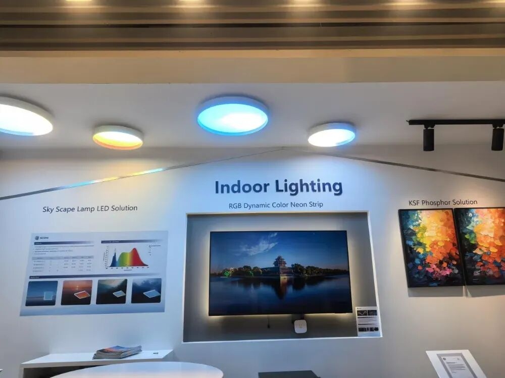 户外照明方面,推出A级高能效新品及超低温照明方案,包括倒装EMC5050系列和陶瓷3535系列整灯解决方案。室内照明展示KSF高光效高显指系列、可调光天际灯产品方案和Dimming精密调光方案。首次亮相的RGB+IC极光灯支持单点独立控光,多种尺寸可选,确保光色均匀。