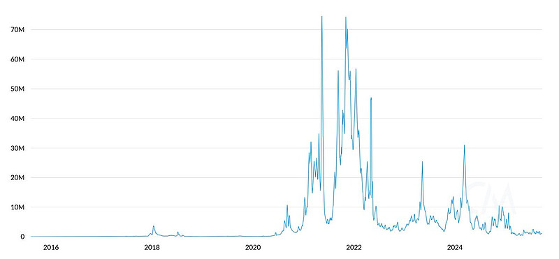 事实是以太坊链上的资产一直在增长,但以太坊的fee并非成比例增长的,存量和vol是两个概念,以太坊的不断升级本身也降低了单位vol的费用,最明显就是坎昆升级后fee的断崖式下跌。