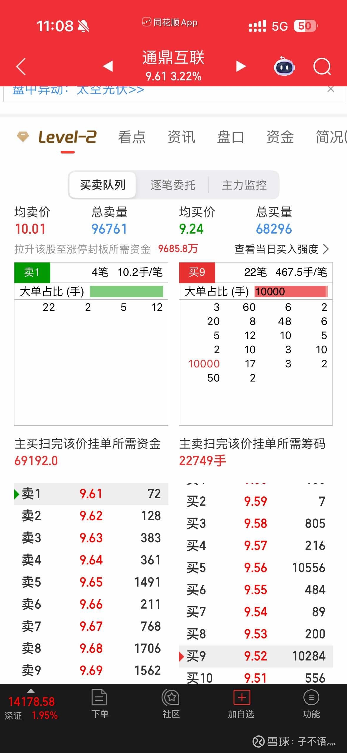 算力和光涨的挺猛,挑了个形态好的买了点,出现两个万手拖单,验证下是不是诱多