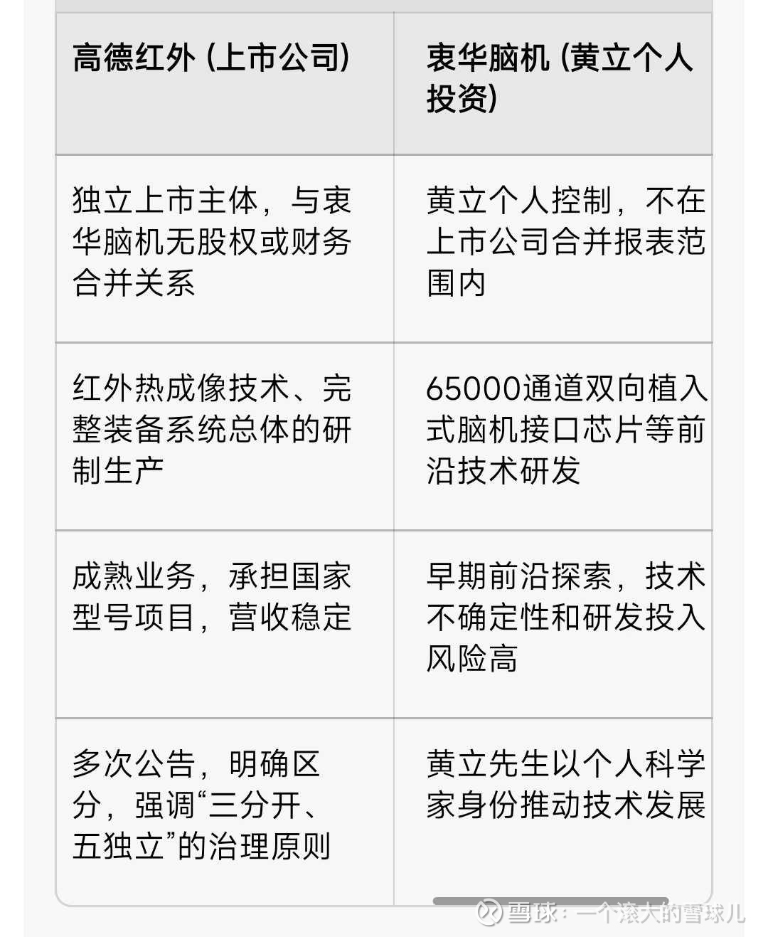 技术阶段与商业逻辑:高德红外核心优势是红外热成像技术及装备系统应用,是当前营收和利润基石;脑机接口属全新前沿领域,二者技术路径、研发模式、应用市场差异显著。独立运营脑机接口业务,能使其更专注于尖端突破,不受上市公司短期业绩考核束缚。