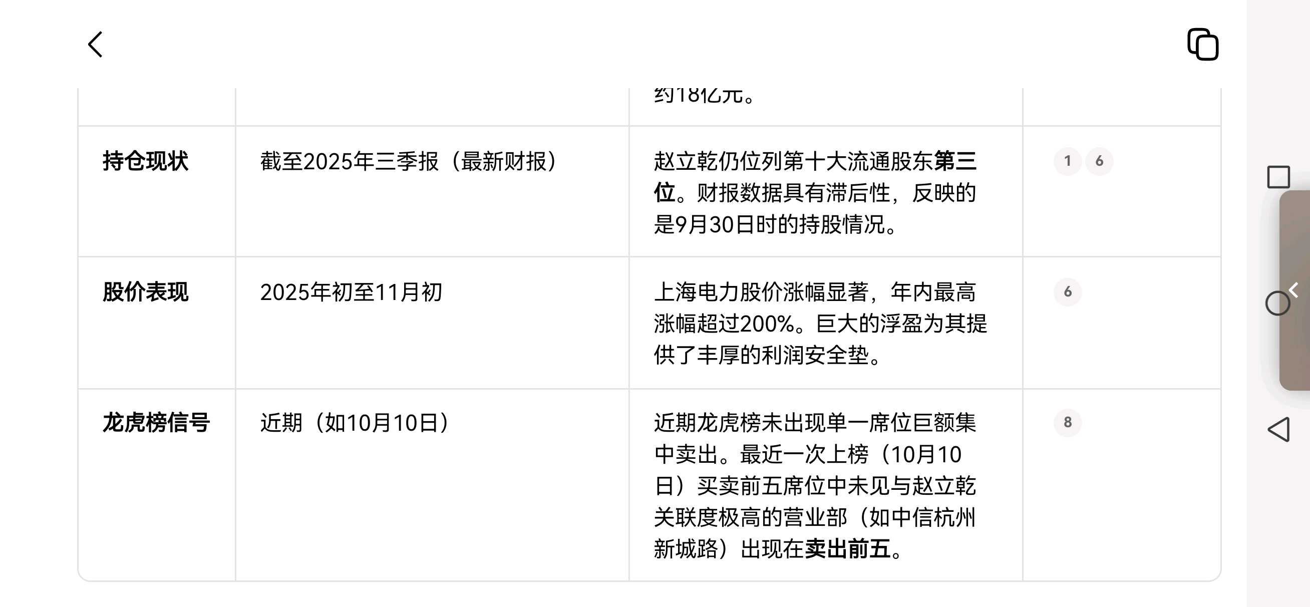 密切关注上海电力后续发布的2025年年报和2026年一季报。如果赵立乾先生的持股数量大幅减少或退出前十名流通股东,则可视为离场的明确信号。