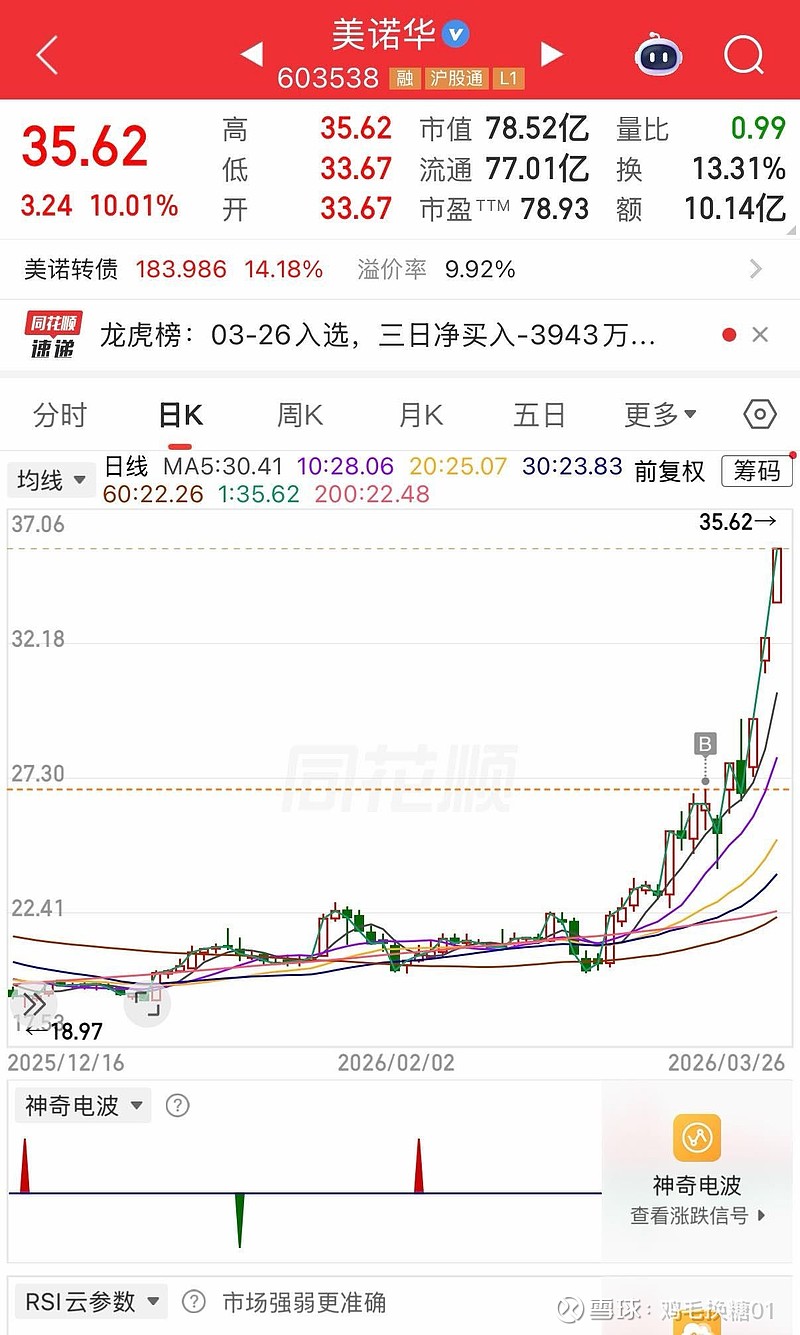 美诺华,最早以为是家外国公司后来是企业的一个老大哥退休后去了这家企业也是10年前的事了最近观察到它估计异动就买了半仓犹豫间,多拿了一会吃了一大波股票很神奇你越关注,越在意似乎越是拿不住冷门中,找到买点模糊中有点预期耐心持有这可能才是正收益的来源#美诺华#