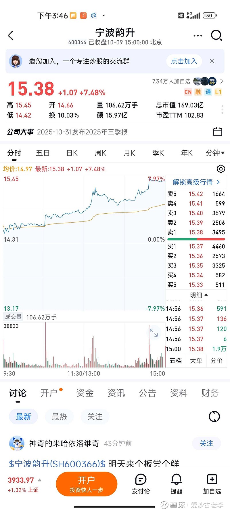 $宁波韵升(SH600366)$