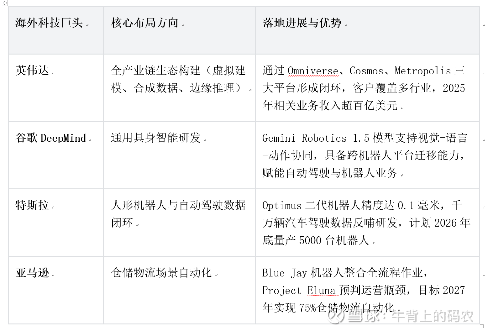 和通用AI“讲故事、炒概念”不同,物理AI的投资逻辑很实在——拼的就是“落地能力”:谁能在具体场景中拿出可验证的效率提升、成本下降数据,谁就能在万亿市场中站稳脚跟。本文结合海内外标杆案例,拆解高潜力赛道的投资机会,梳理核心企业布局,提示关键风险点,给投资者一套从选赛道到挑标的的完整实操框架。