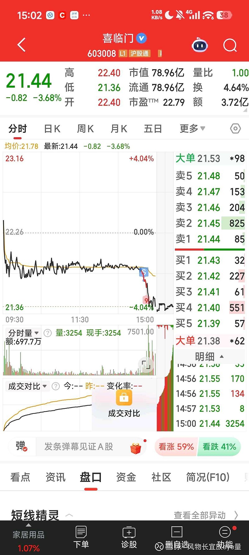 幸好老子盯着你,就知道你今天不涨有蹊跷。赶紧卖了