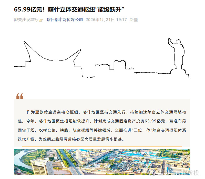 喀什投资 66亿元,进行基建。