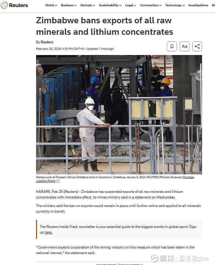 津巴布韦限制了所有原生矿物的出口