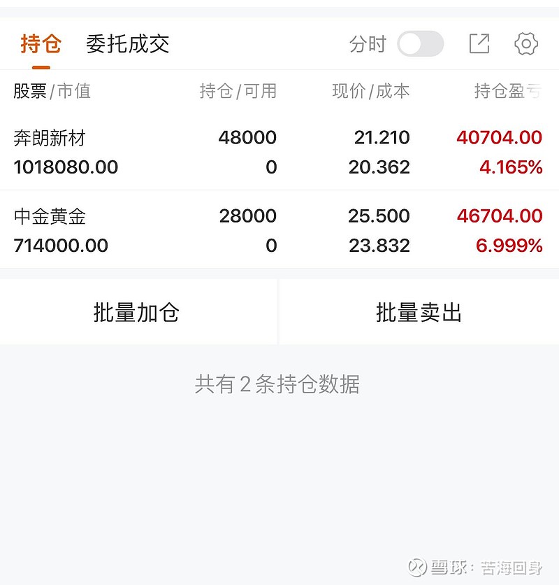 奔朗新材建仓中金黄金建仓奔朗新材今日表现出强劲上涨趋势,受稀土管制政策利好的基本面支撑,短期技术指标显示超买,但,中期趋势向好,今日突破压力位,短期面看好,但要小心外部回调风险。中金黄金最近走势也强劲,股价也是突破了关键的压力位,均线呈现多头排列,技术面强势,基本面受益于黄金价格的上涨和产能扩张,短期也是看好,具体操作看明天盘面在做决定。$奔朗新材(BJ920807)$ $中金黄金(SH600489)$温馨提示:个人操作 不作为推荐 投资有风险