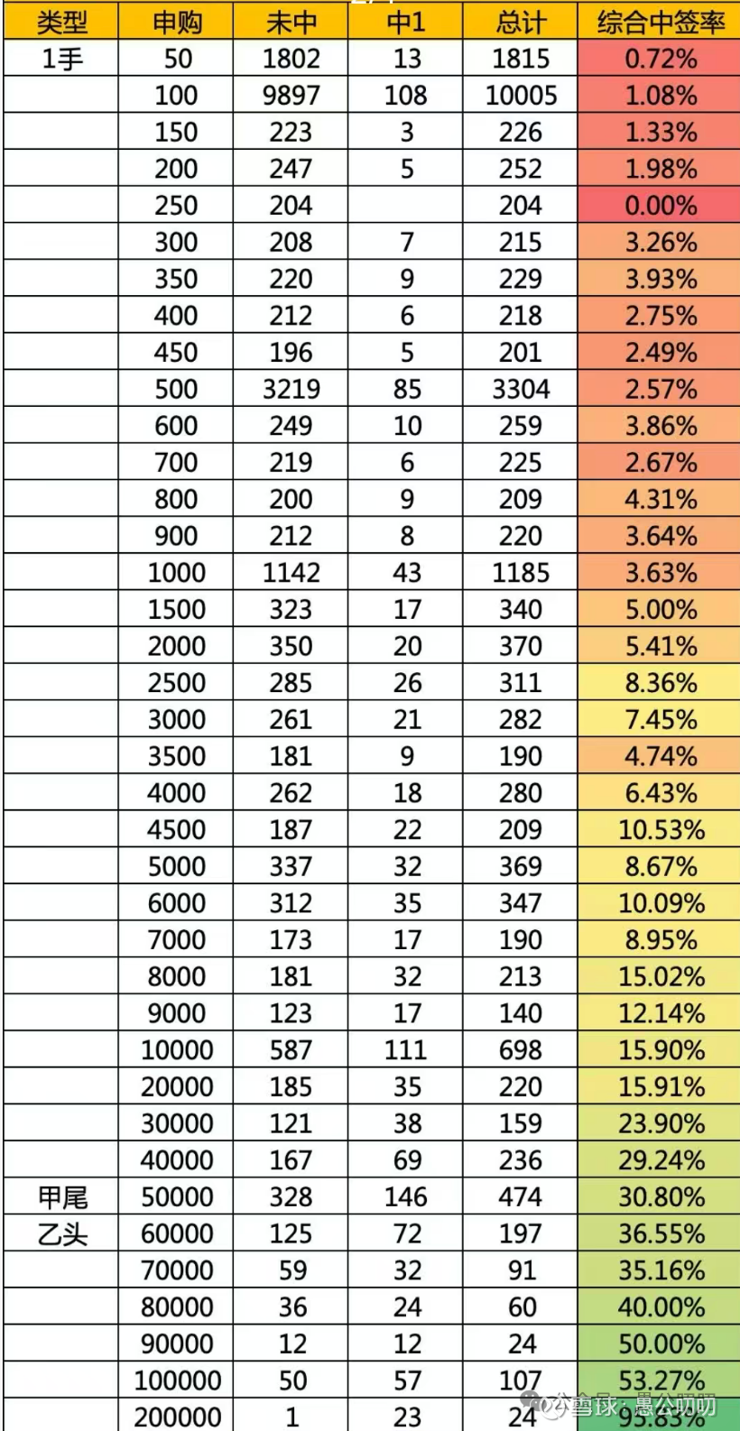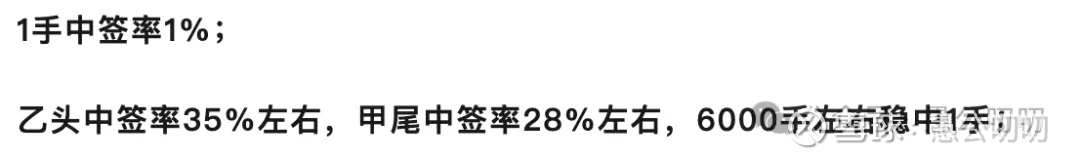 甲尾中签3~4手,乙头中签率6手左右。