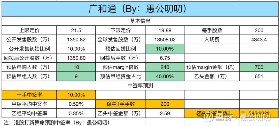 广和通目前margin金额300亿,超购103倍,假设最终超购240倍超购700亿的话,中签率预测如下: