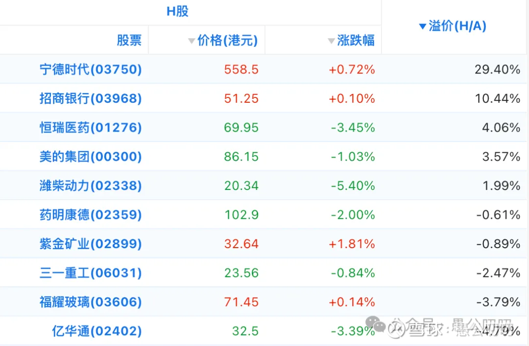 AH折价信息:昨天A股收盘价349.93,折合港币是382.09,上下限定价分别对应折价率是-1.8%~9.2%,没看错如果是上限定价H比A还要贵一些,目前只有宁德、招行、恒瑞、美的、潍柴动力5只票折价率负的。