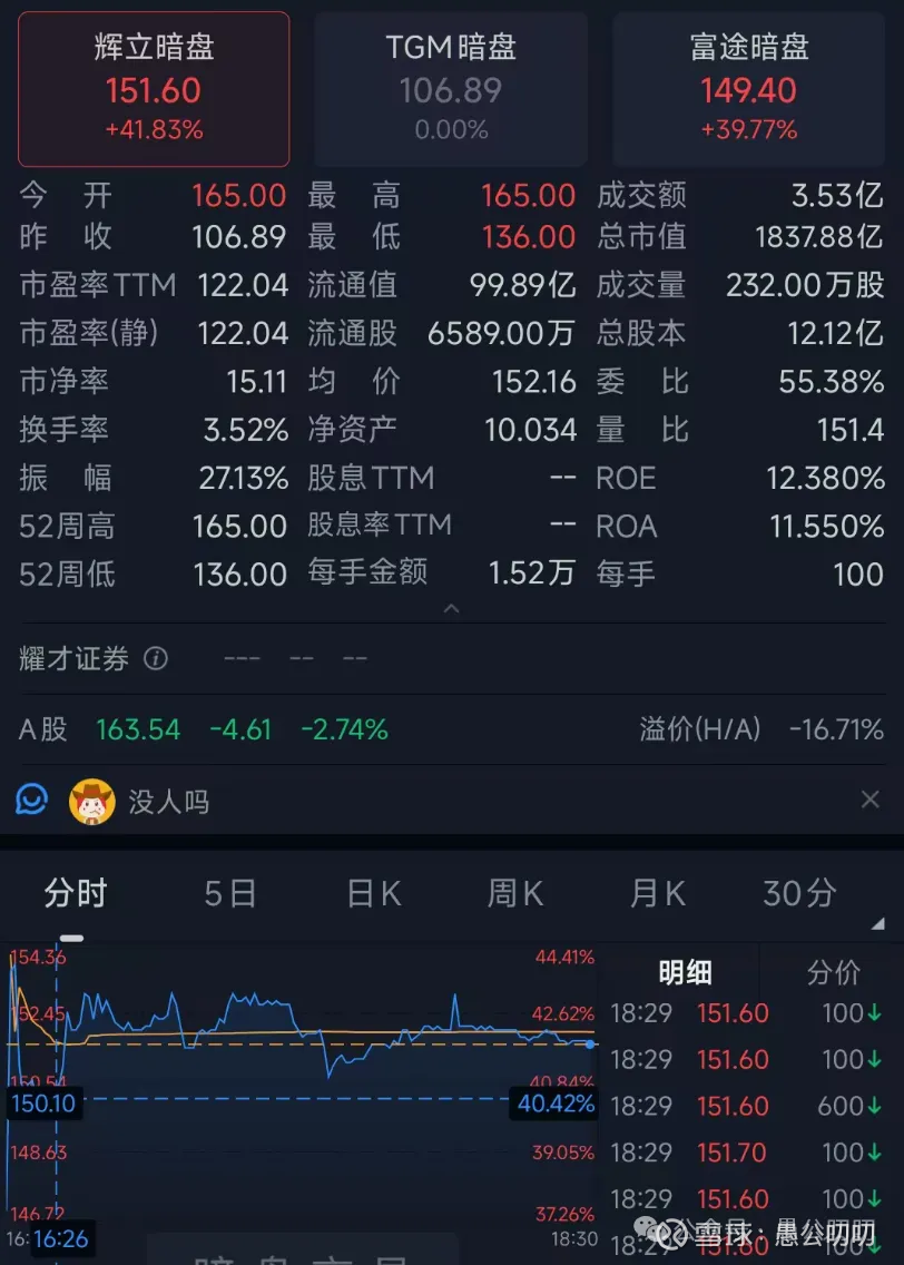 两大暗盘系统内部价格统一,但是两大系统平台经常存在价差,以经验来讲,大部分小票富途炒作厉害暗盘价格高些;大部分大票类辉立机构买入多暗盘高一些;另外就是散装国配砸盘较多时辉立暗盘价格低。