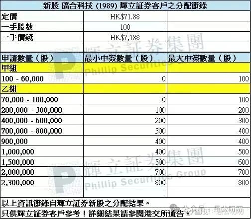 广合科技中签率出炉,最终上限定价71.88。传闻最终超购金额超过3500亿,1手中签率5%、乙头60%、甲尾40%。