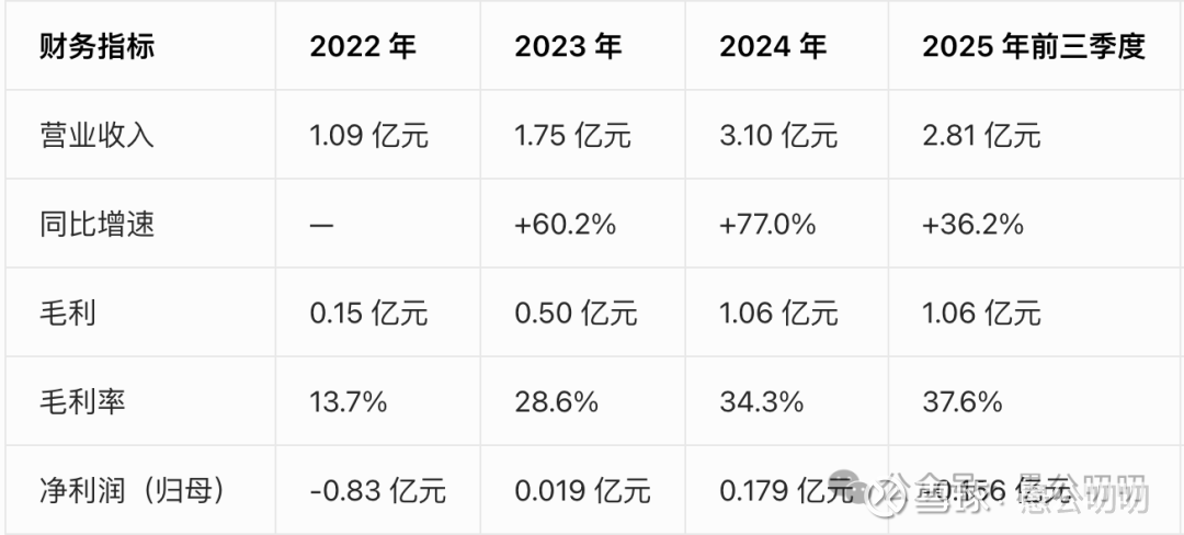 公司营收一直增长不错,2022~2024年营收复合增长率高达68%,2025年前3季度同比增长超过36%。
