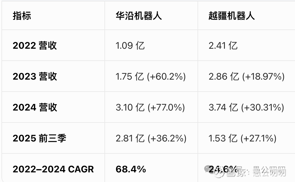 毛利率华沿(37%)低于越疆(47%);