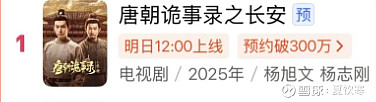 《唐朝诡事录之长安》(第三季)开播首日即展现强劲热度,上线一小时后热度值突破上万,并在当日登顶某平台首页推荐位。