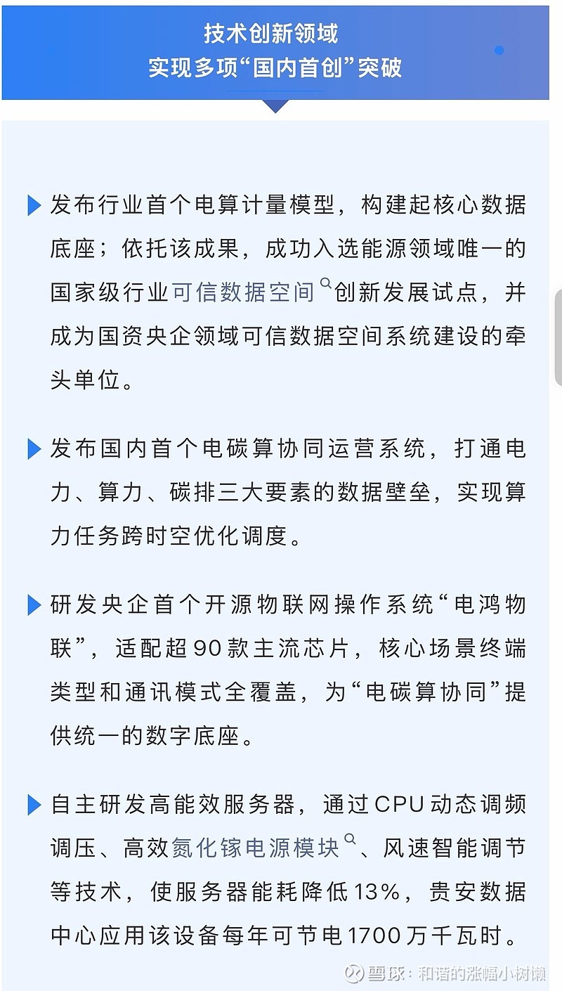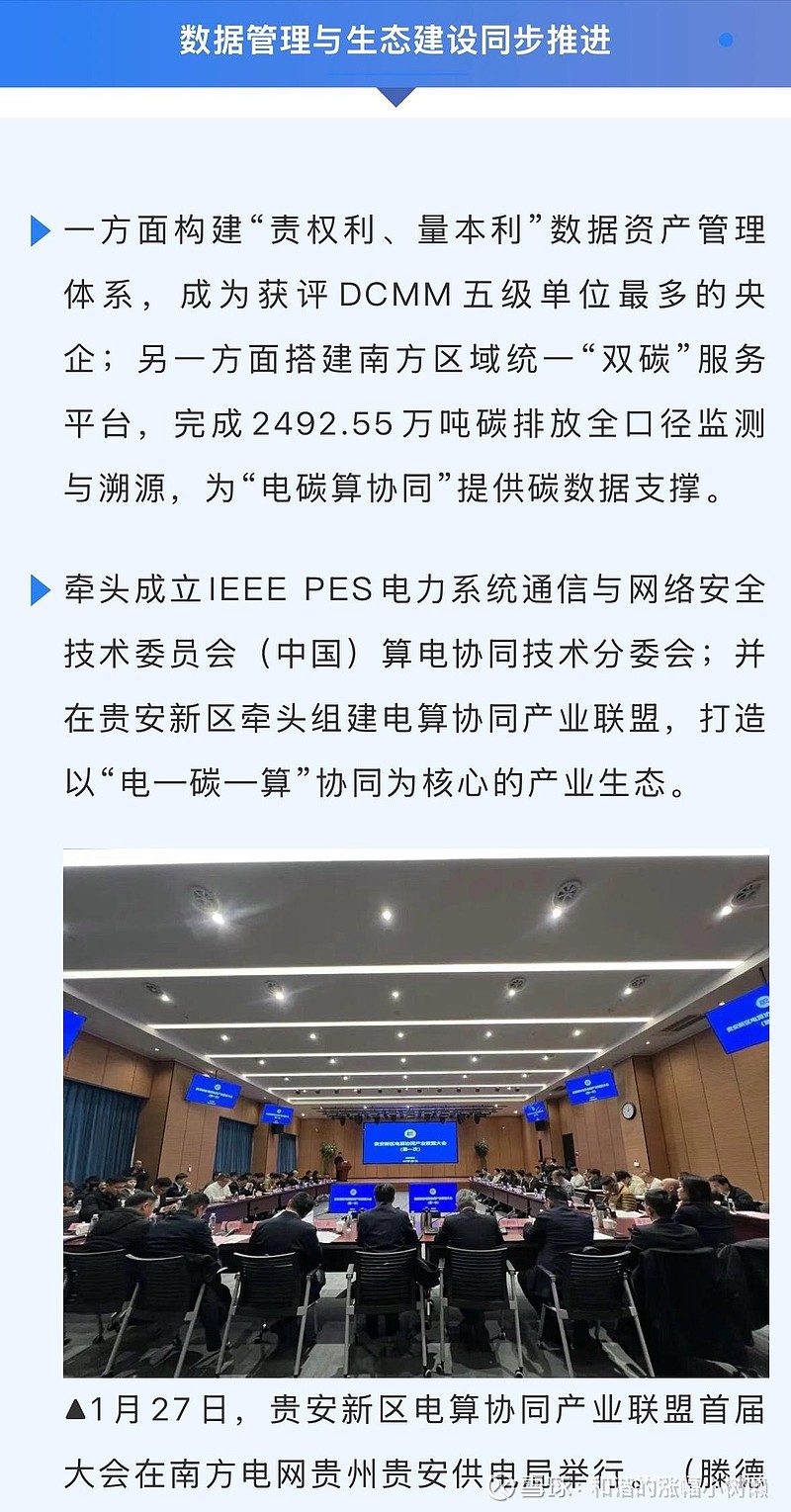 作为新型电力系统建设排头兵,南方电网已在“电碳算协同”领域提前布局。“十四五”期间,公司建成“3+1+X”数字基础设施集群,研发“电鸿物联”操作系统、高能效服务器,发布国内首个电碳算协同运营系统,以多项首创成果支撑国家战略。