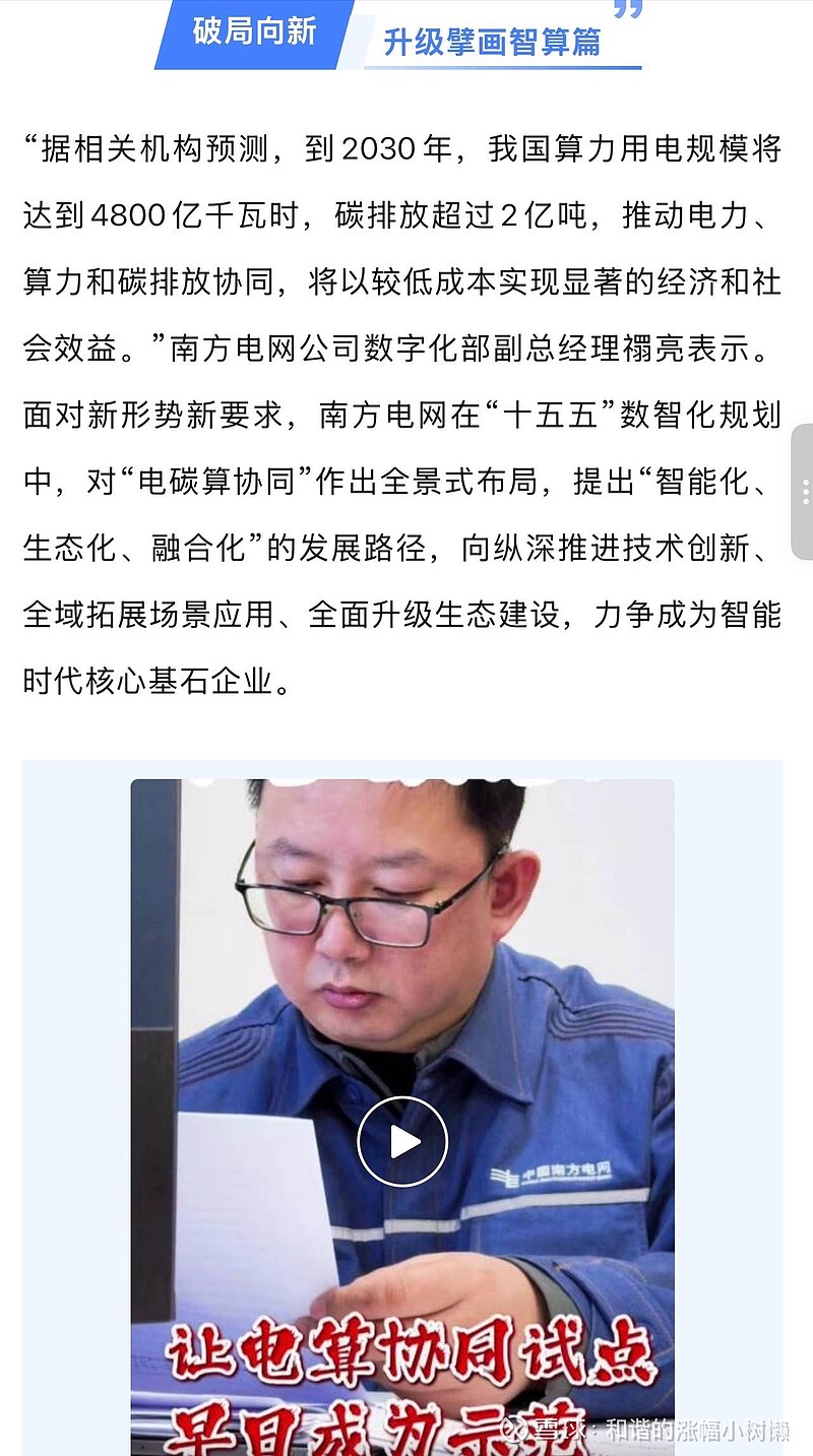 面向“十五五”,南方电网坚持智能化、生态化、融合化方向,围绕基础设施、技术创新、场景拓展、生态升级全面布局,以“电为基、碳为脉、算为翼”的融合范式,为我国算电协同发展树立标杆。