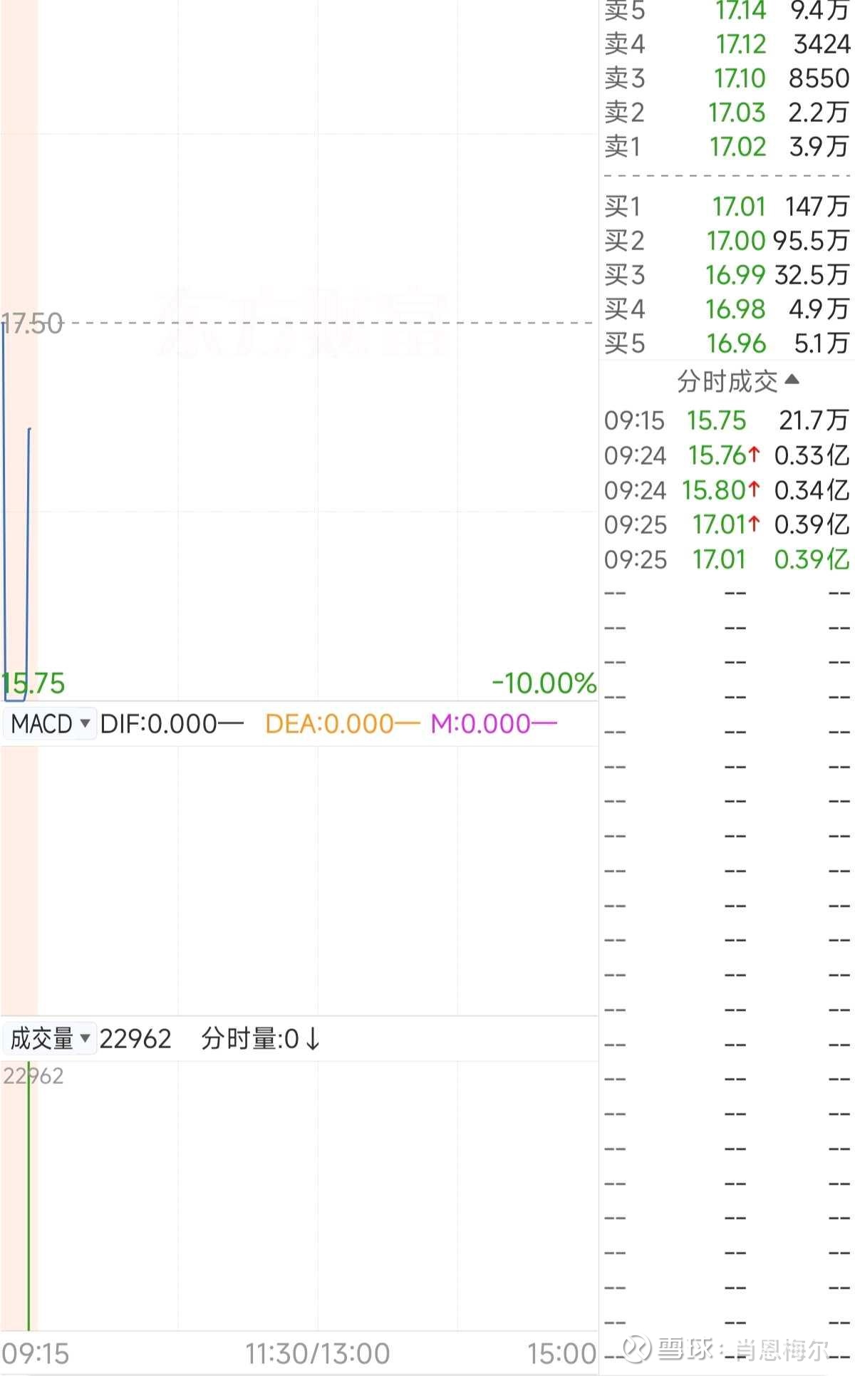 受尾盘跳水+历史天量炸板的影响,市场资金对次日走势形成极强的一致看空预期,普遍预判该股将以跌停价开盘。