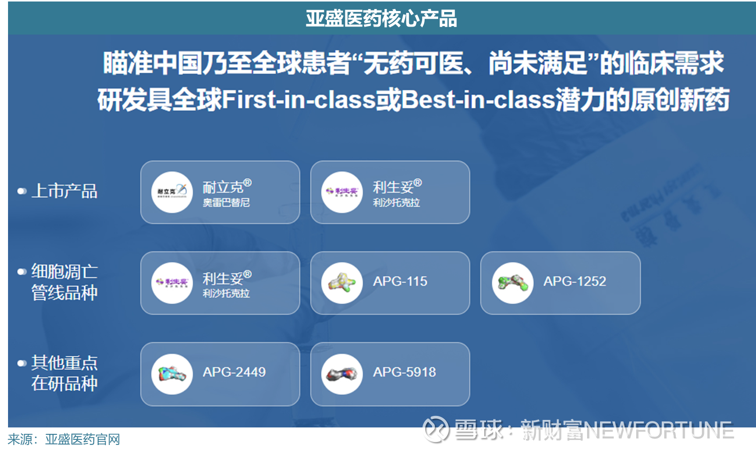 而利生妥只是亚盛“细胞凋亡矩阵”的第一块拼图。随着商业化基础逐渐稳固,亚盛的多管线系统也快速成型。