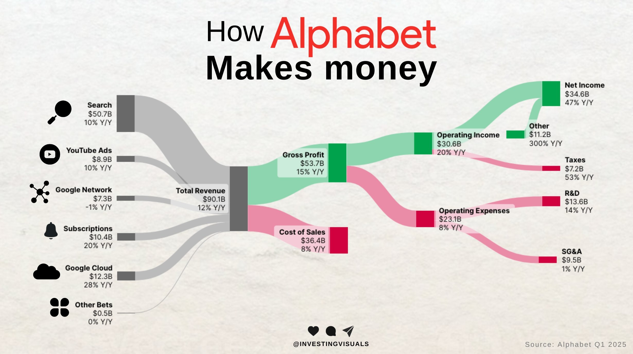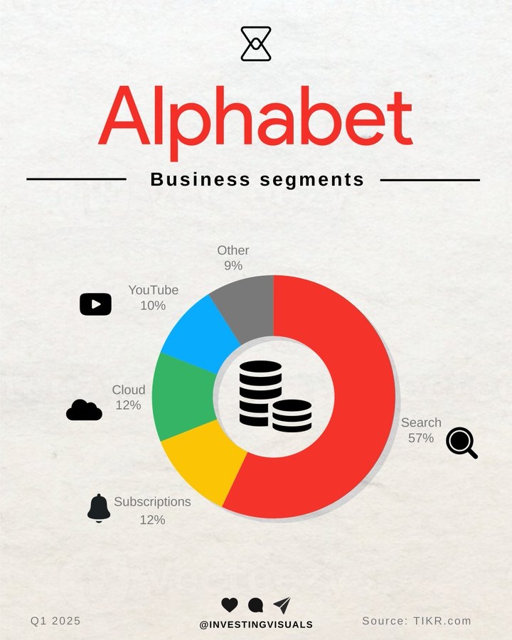 57% 的收入来自搜索。目前他们的主要增长引擎是谷歌云,同比增长 28%。
