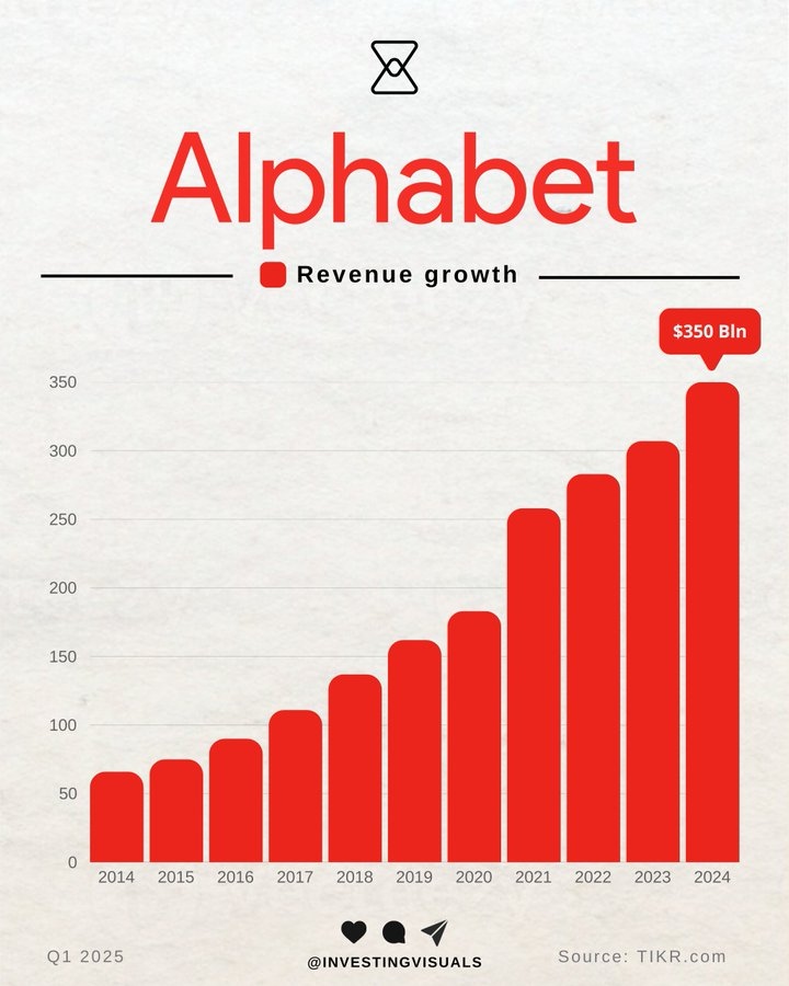 在过去的 10 年里, 收入从 660 亿美元增长到惊人的 3500 亿美元。