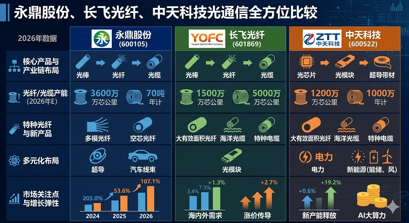 需要说明的是,光纤价格的攀升不至于在Q1业绩里完全体现,我们认为这种滞后性恰恰是留给聪明钱的机会。从组合角度,我们认为长飞是底仓,看的是行业天花板;中天是腰部,看的是综合竞争力;而永鼎则是这波“不愁卖”周期里,弹性最大的品种。
