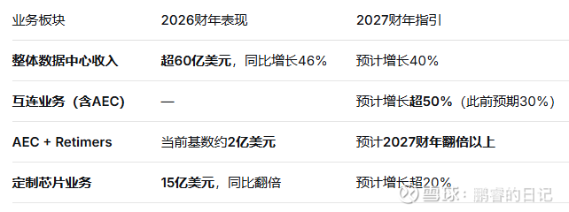 我们能看到AEC预计26年指引增长50%,超市场预期的30%,且2027年翻倍以上,也就是27年打底都是翻倍,上限几倍不知道!