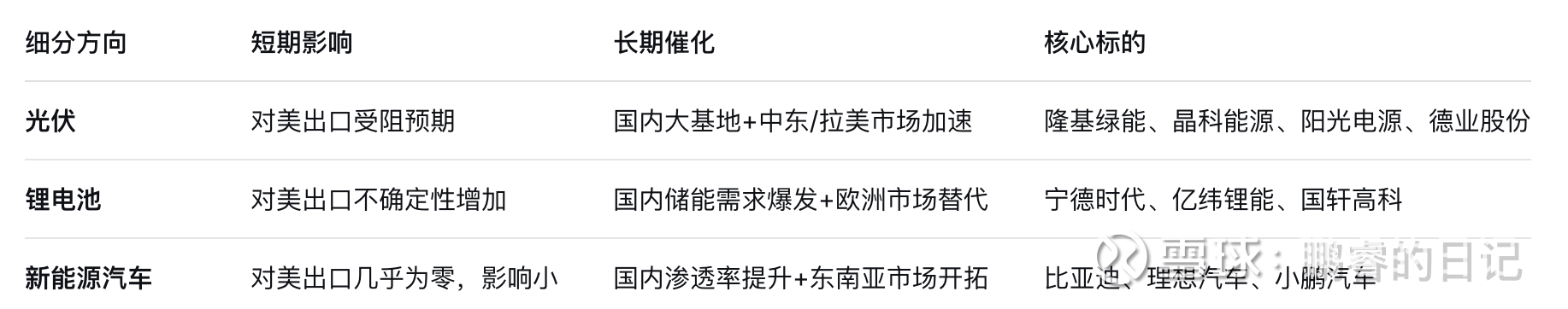美国阻碍绿色产品贸易(如光伏、锂电池、电动车)是本次调查的另一核心领域。调查启动后,短期内可能影响相关企业出口预期,但长期看将催化: