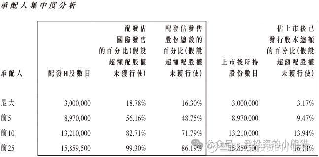 新琪安(02573.HK)国配货是很集中,前25大承配人上市后所持股份数目占上市后已发行股份总数11.27%。新琪安(02573.HK) 这个票稳价人是民银证券,绿鞋失效。