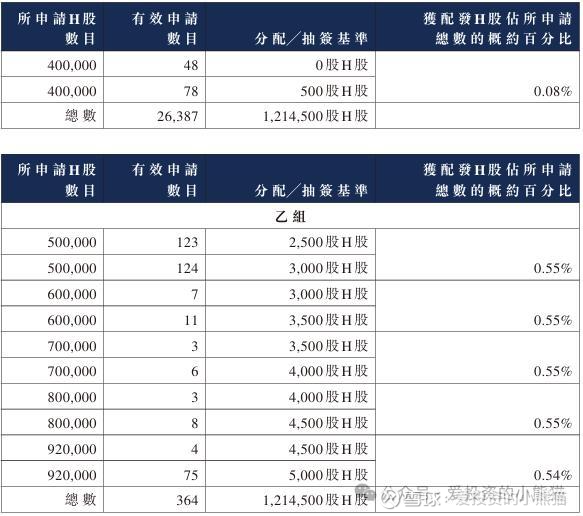 新琪安(02573.HK)乙组官方披露的中签名单里有46人中签4200股,有61人中签4400股,有21人中签5600股,有35人顶头槌认购中签7200股。乙组总共中签83.12万股,货值约1571万港元, 乙头货值约8万,顶头锤货值约13.61万。