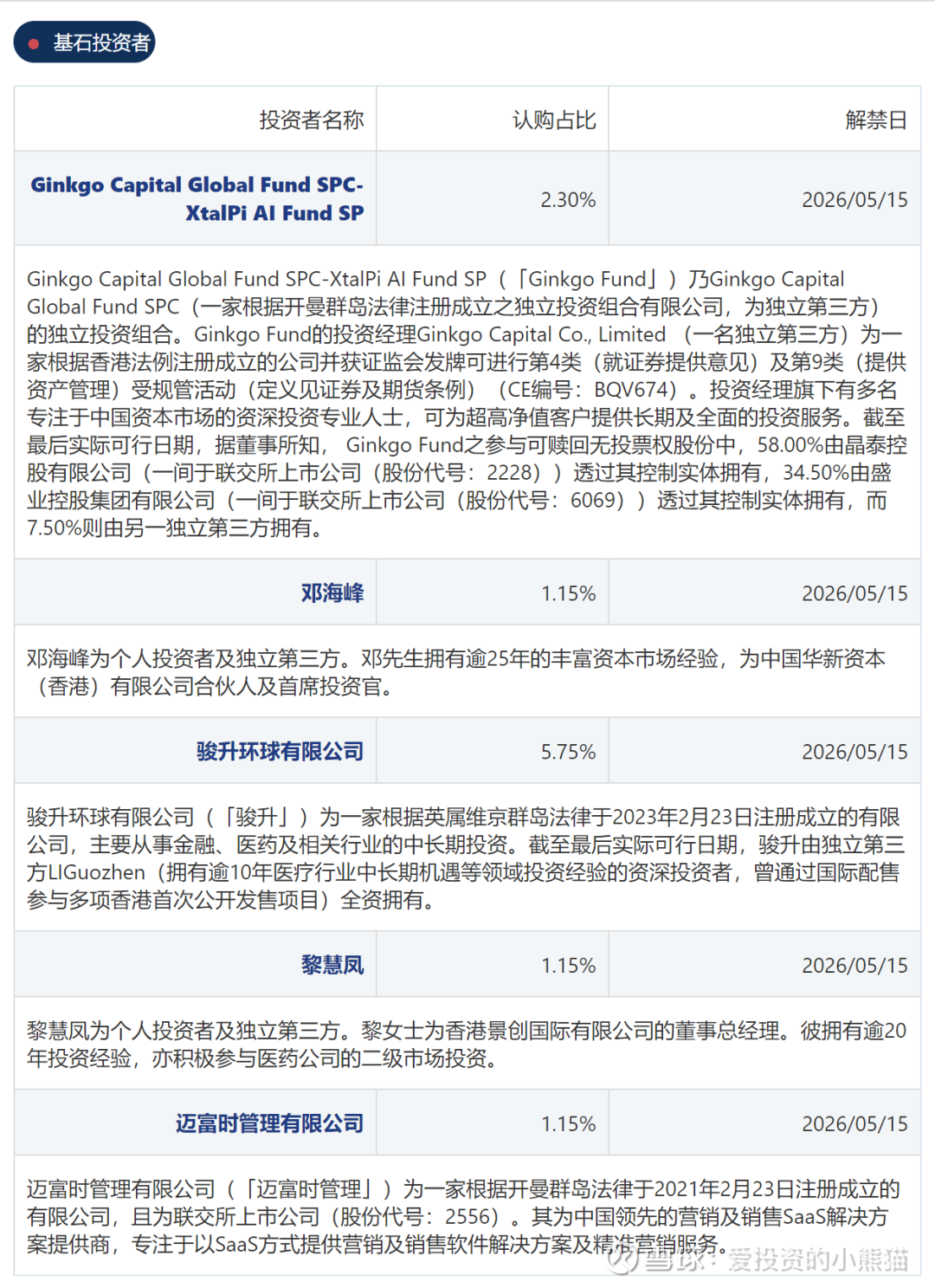 说的更直接点,这个票就不用看什么基本面了,就是赌我之前文章里说的庄股逻辑。然后看看这个基石,之前又有迈富时,又有晶泰科技参与,都是24年上市的公司,赚到钱了然后又来投2025年的新股。