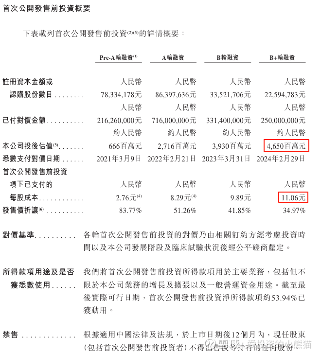 最后一轮融资每股成本为人民币11.06元,较发售价折让34.97%。