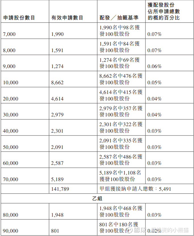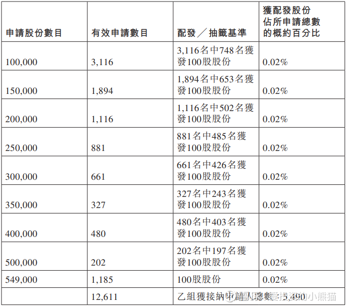 不同集团(06090.HK) 乙组官方披露的中签名单里