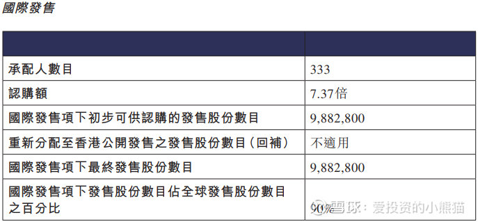 不同集团(06090.HK) 国际配售总共333人,认购额7.37倍。