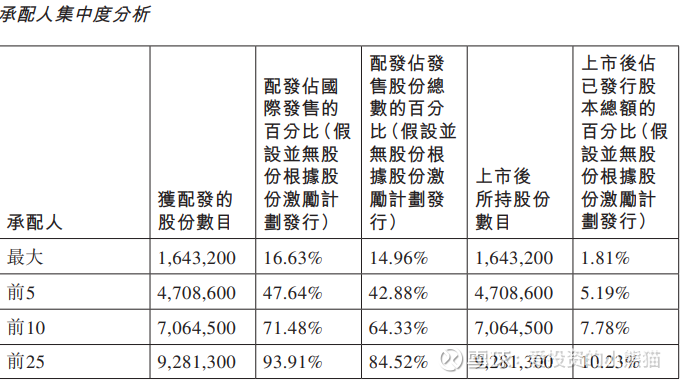 不同集团(06090.HK) 国配货是比较分散,前25大承配人上市后所持股份数目占上市后已发行股份总数10.23%。不同集团(06090.HK) 这个票稳价人是中信里昂,绿鞋无效。