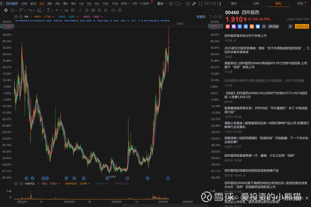 中国生物医药产业正处于快速发展期,2025年市场规模预计突破3.5万亿元。政策层面,创新药审批周期缩短至6-8个月,NASH药物被纳入优先审评通道。轩竹生物作为港股18A条款下的未盈利企业,符合资本市场对创新药企的投资偏好。毕竟还是背靠着四环医药这个大树。