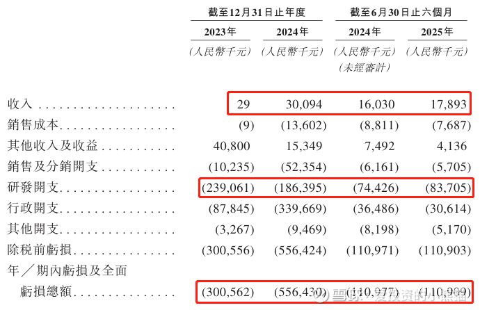 研发分别约为人民币-2.39亿元、-1.86亿元、-0.74亿元及-0.84亿元,2024年同比增长率为-22.03%,2025年前3月同比增长率为36.38%;