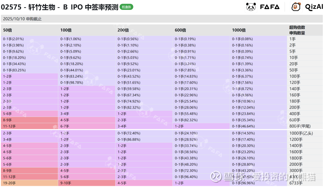 关于一手中签率方面,无论孖展多少倍,长风本次公开发售仅占10%,无回拨空间,按照20万人来参与预估一下,一手中签率最好的情况也不超过2%不到,这一次因为发行量比较少,中签率应该很低。