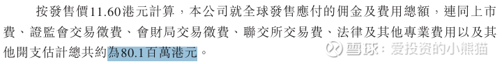 然后这个票招股书上按发售价11.60港元计算,公开的上市所有开支总额约为8010万港元,募资额约7.81亿港元,占比约10.26%,开支相比募资额算是一般化了。