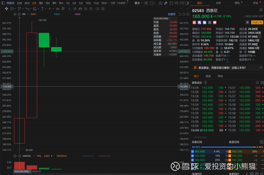 如果是60亿市值冲一倍上去可能性是很大的,毕竟现在机制b的票大部分涨幅都能冲一倍以上,不过如果是以18亿流通盘来看的话,离94亿差5倍呢,这个难度就有点大了,之前西普尼也是同样的情况当时它的流通股只有17.41亿,结果硬是干了457%涨幅上去,现在市值97亿,已经达到上了港股通的门槛了,西普尼也是拉到100亿就休息不动了。