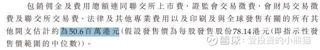 然后这个票招股书上按发售价范围的中位数78.14港元计算,公开的上市所有开支总额约为5060万港元,募资额约8.99亿港元,占比约5.63%,开支相比募资额算是比较少了。